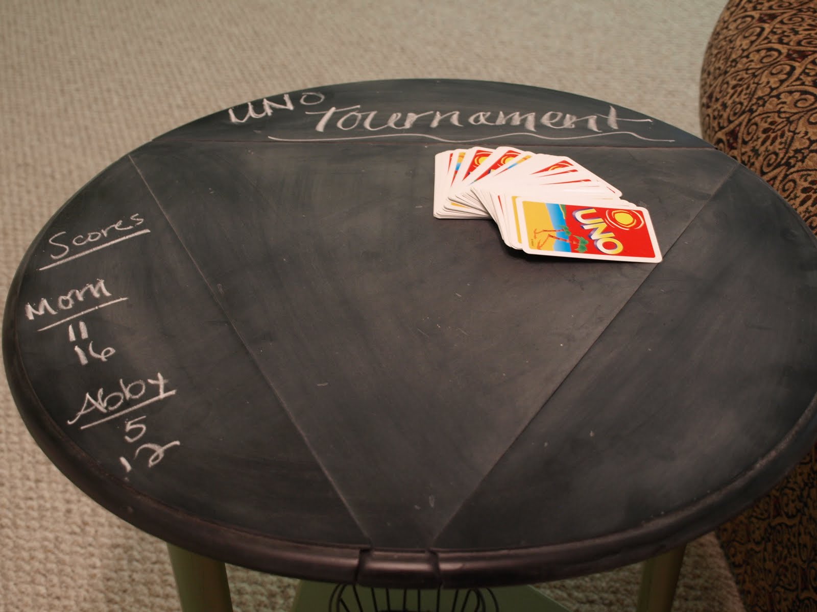 What a great idea. Love that. I need a little table like that for my gameroom. I must start looking. Thanks for that darling idea.
