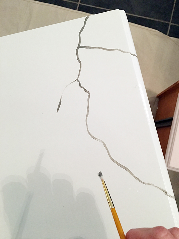 After smearing some of the gray off, I will go back and paint a thin line again over some of the areas. It’s hard to go wrong because it’s like real marble– very unique, with no two pieces the same!