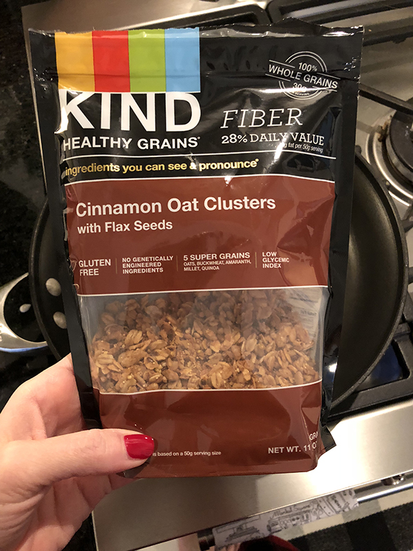 Right after that, sprinkle a layer of granola all over the top side of the batter. This KIND Cinnamon is our favorite! (Available via affiliate link>> here)
