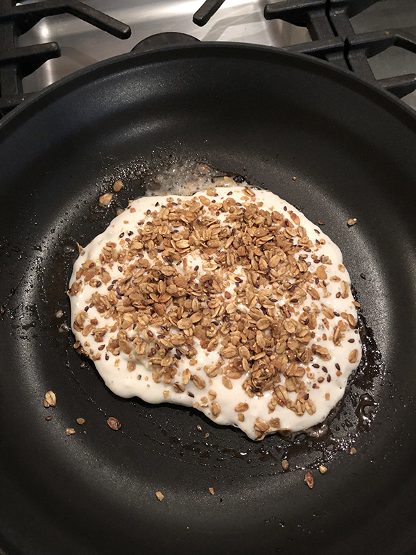 Then, just like regular pancakes, flip when the under side is golden brown. That’s it! no need to add granola to the other side.
